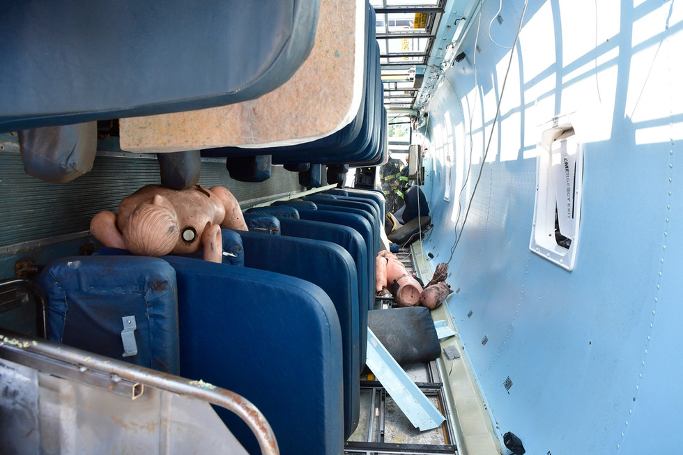 Using an out-of-commission bus, response teams conducted a full-scale demonstration as CCPS bus drivers and monitors observed.